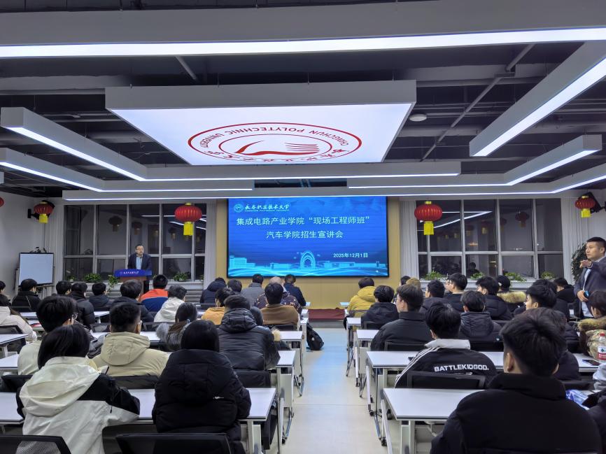 为满足国家及东北地区集成电路产业发展需求,深化产教融合,推进集成电路领域高素质技术技能人才培养,电子信息工程学院联合苏州华兴源创有限公司和上海启芯众创科技技术发展有限公司分别组建芯片测试和模拟版图设计方向订单班,并于2025年12月1日至2日,在汽车学院、信息学院、机电学院开展了企业宣讲活动。
