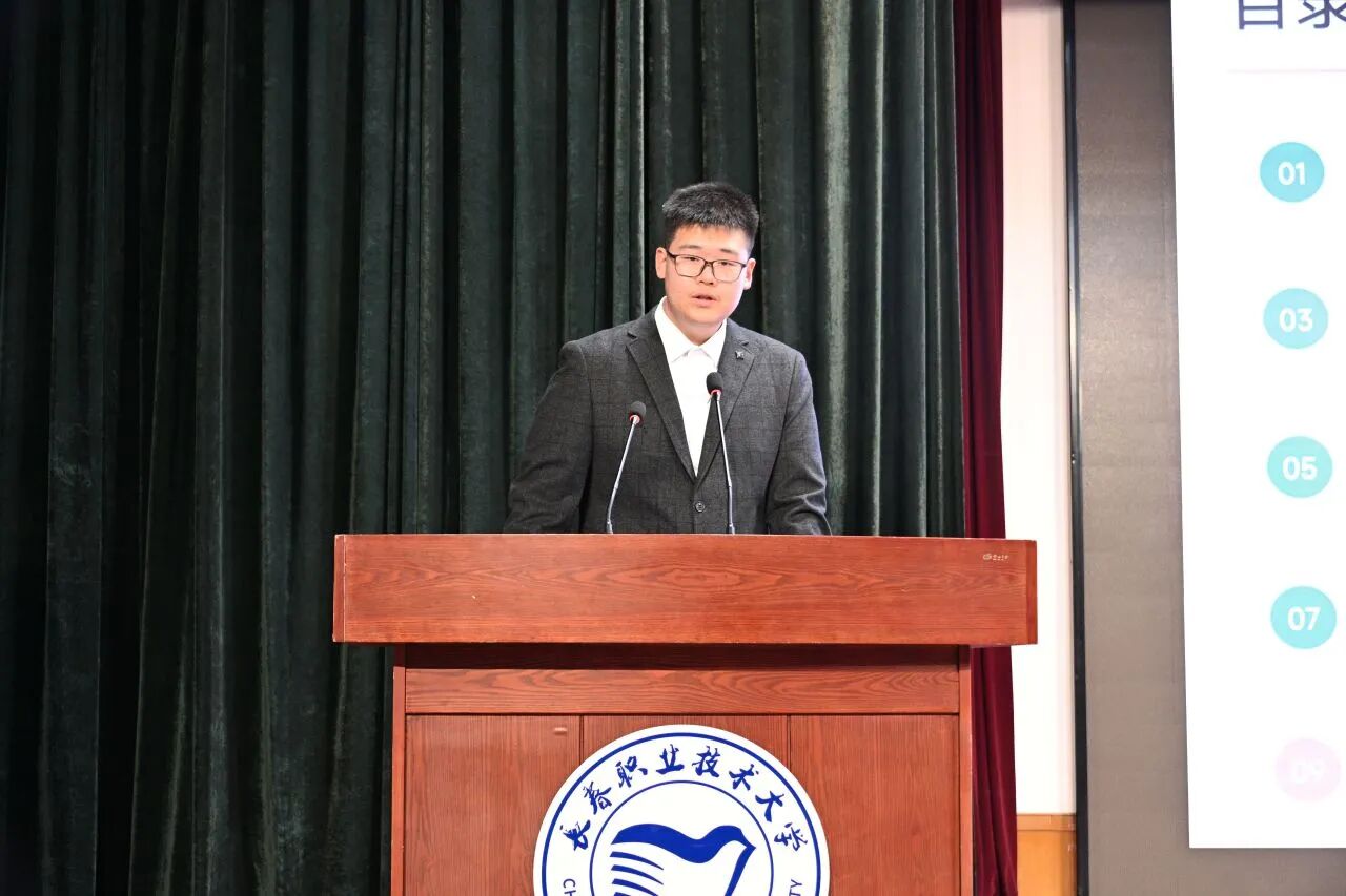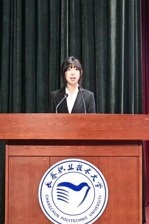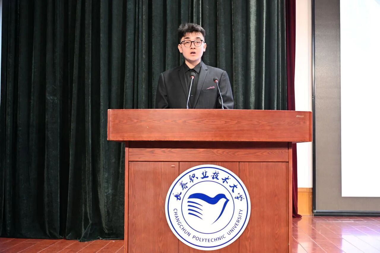 城市轨道车辆应用技术专业王思谕同学以《青春在网格间绽放》为题,讲述了她在梨树县幸福社区三十天的网格志愿者经历。从走访入户到反诈宣传,从环境清扫到慰问独居老人,她用“脚步、钉钉子、创新、温度”四个关键词,诠释了一名大一新生在基层服务中的责任与担当。“被需要是一种幸福”,这句朴实的感悟引发了在场师生的强烈共鸣。